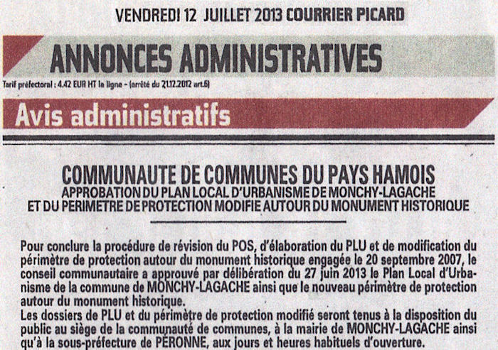 Sur le fond, un jugement en date du 29/12/2015 annule le PLU de Monchy Lagache en tant que ce PLU comporte une zone Ap et une zone Ns.